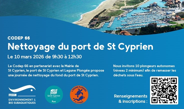 Dans le cadre de la partie environnement de la commission environnement et biologie subaquatiques, une journée de nettoyage de fond de port est proposée à St Cyprien, le mardi 10 mars.