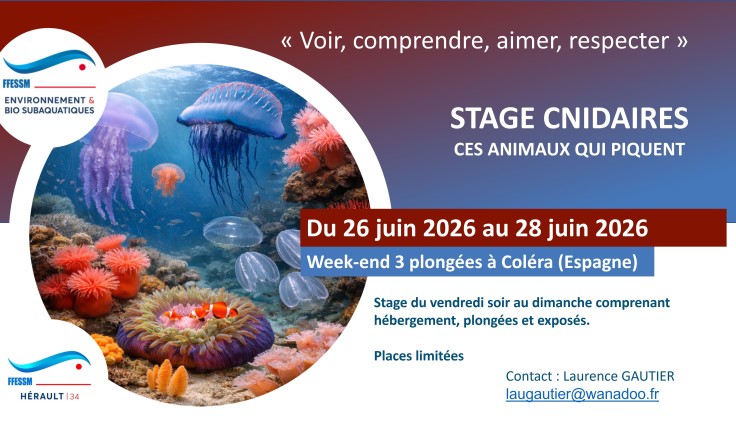 Pour cette nouvelle année 2026, la Commission Environnement et Biologie Subaquatiques de l'Hérault vous propose une nouvelle saison du stage Cnidaire.
